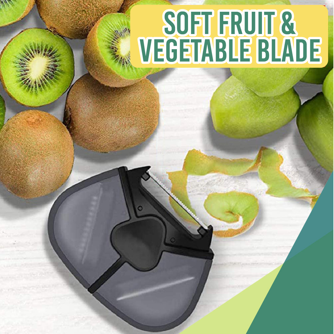 Designed to peel the skin of softer vegetables, such as tomatoes, eggplant, onions and so on.