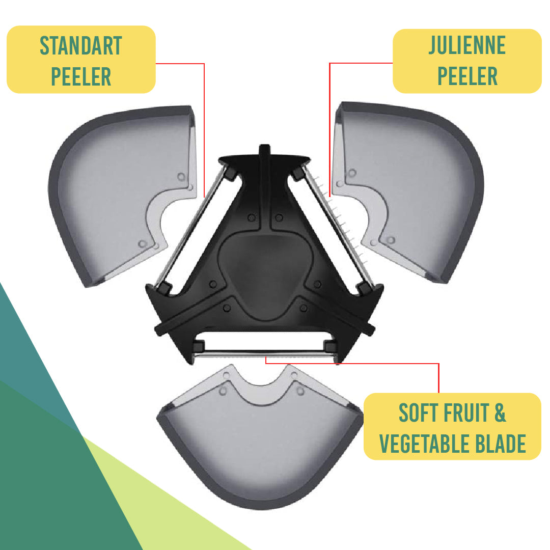 This stylish and functional, cuts julienne strips and peel vegetables as easy as ABC.