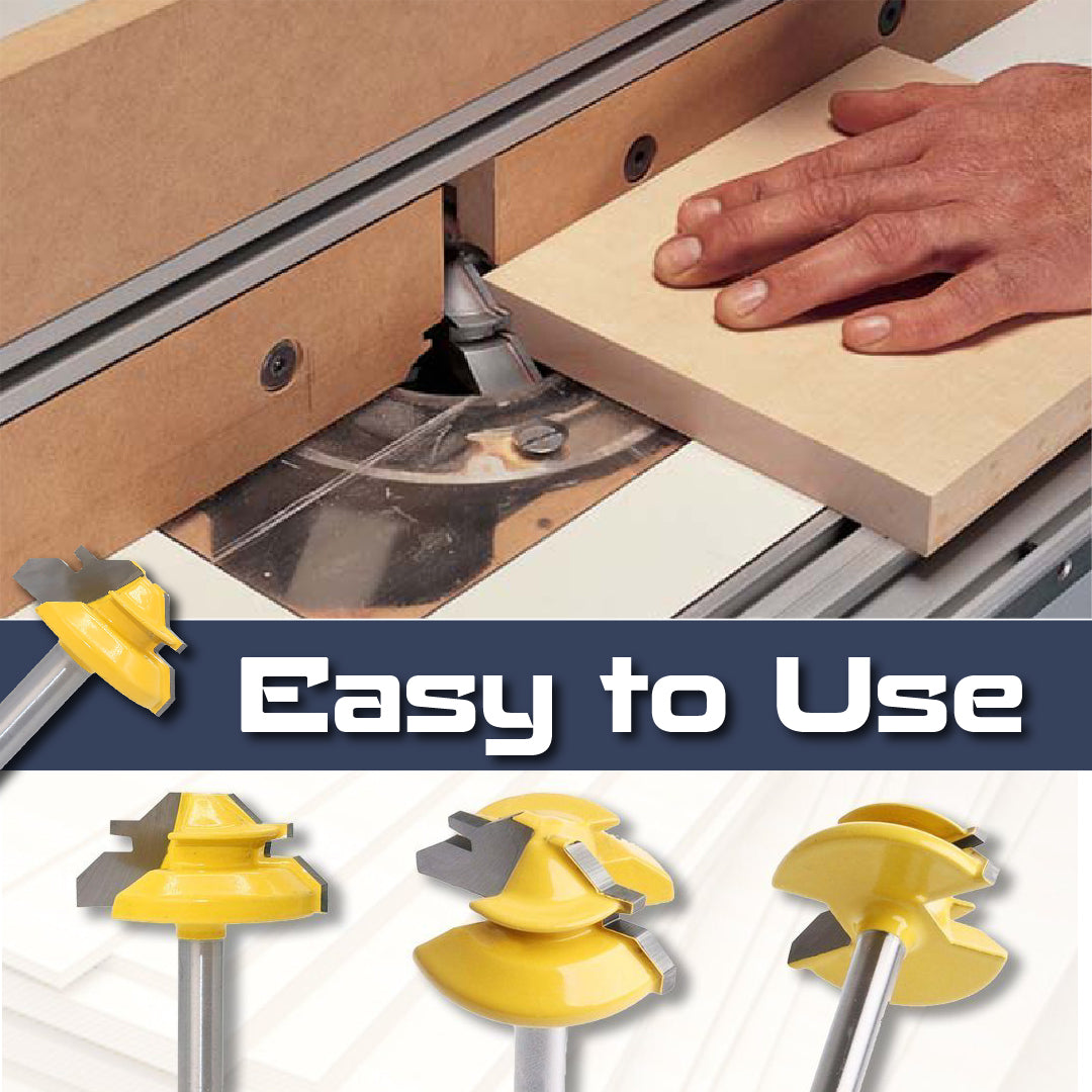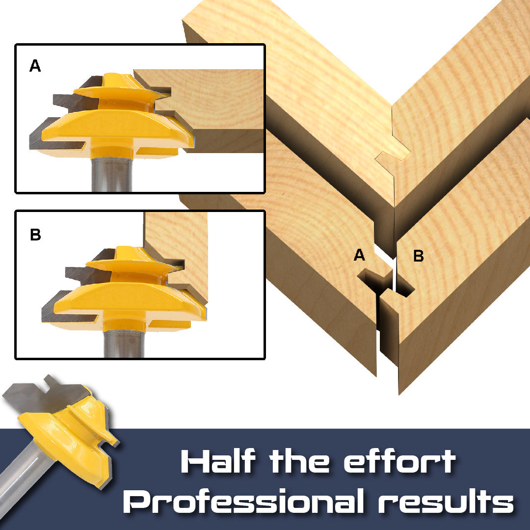 The lock miter cutter head produces perfectly fitting 45 degree miter joints in two steps, creating a strong joint between two woods better than super glue or screws.