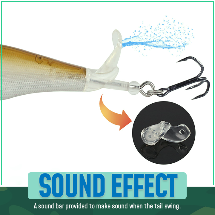 Created and patterned to look like a real fish with spin-tail, lifelike fish scales and 3D eyes, our realistic fish bait attracts fishes like nothing else by its real fish swimming motion!