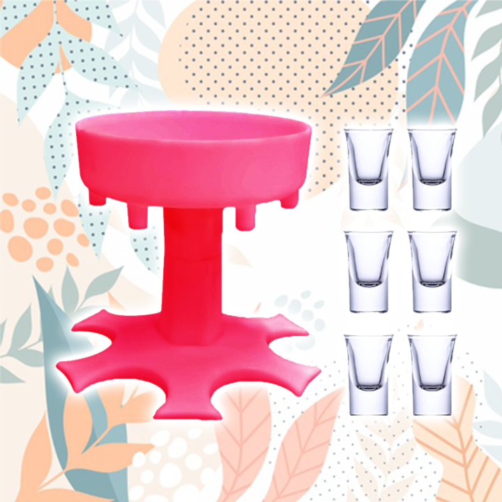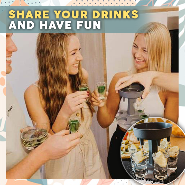 - Easy to use. Place your shot glasses under, pour your alcohol of choice into the top. Then it dispenses that liquid gold to all the shot glasses below and boom, you have shots for six almost instantly!