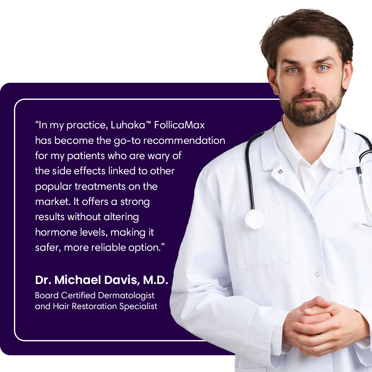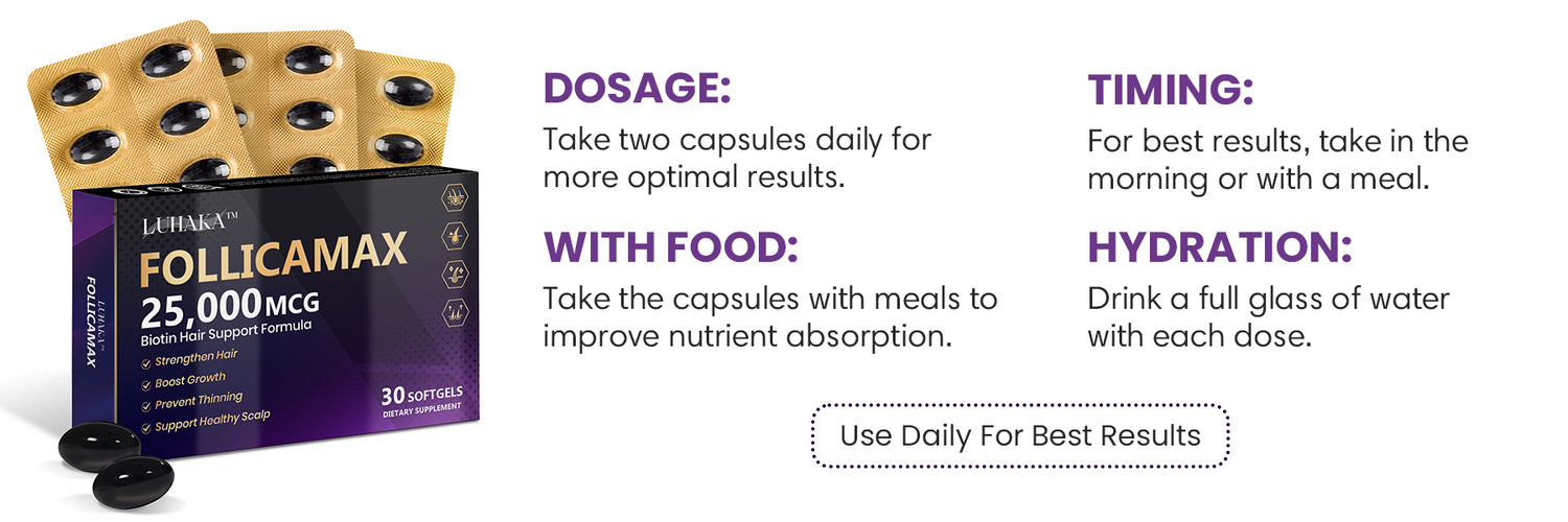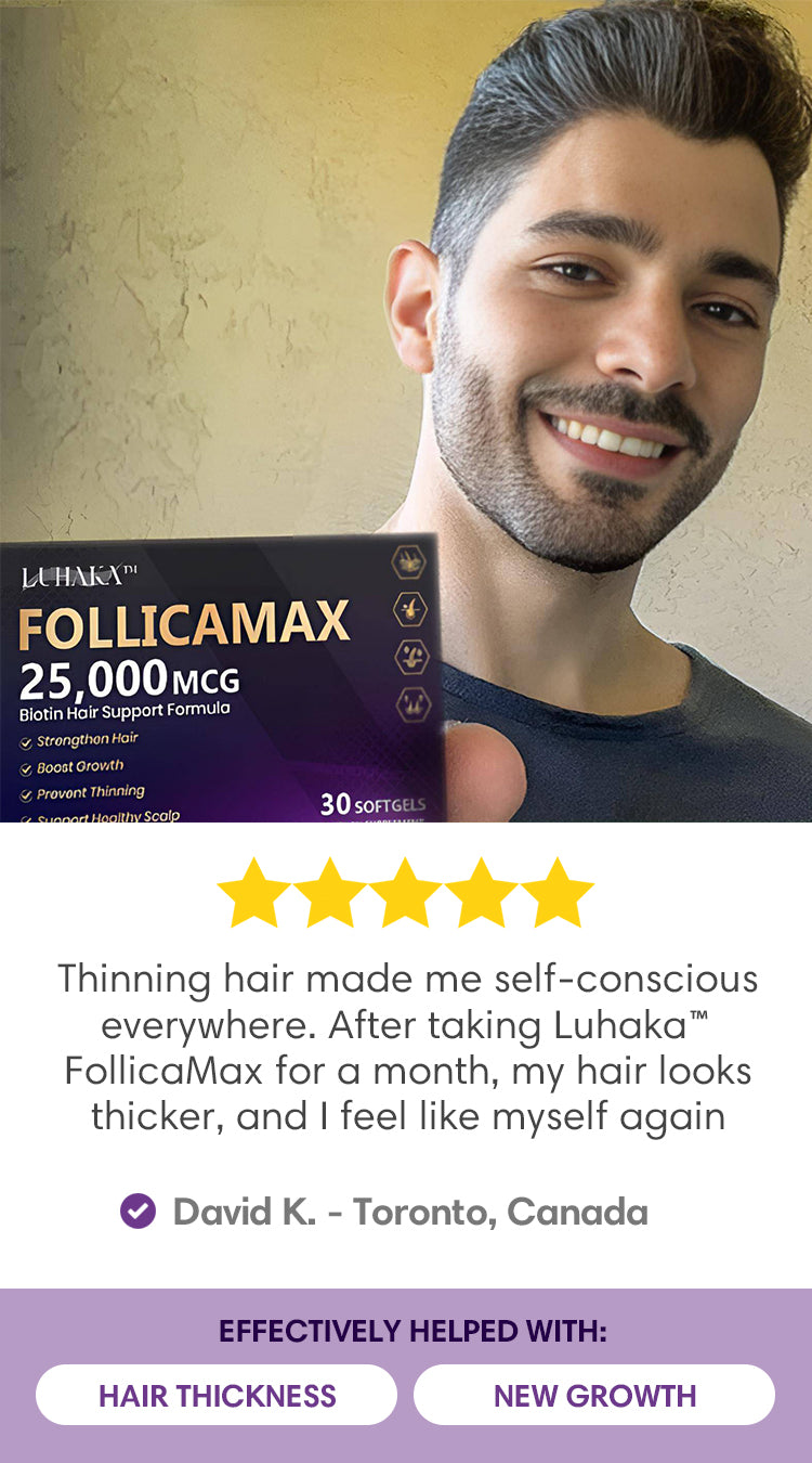 Luhaka™ FollicaMax is a scientifically-backed supplement designed to promote healthy hair growth and scalp vitality. Each ingredient is carefully selected for its proven benefits, and our formula has undergone extensive testing to ensure its effectiveness and safety.