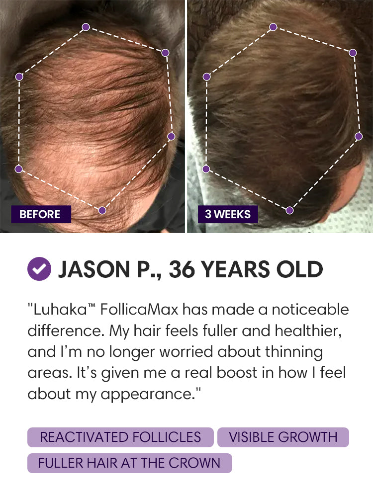 HOW IT WORKS: Luhaka™ FollicaMax fortifies the roots, reducing breakage and shedding for stronger, more resilient strands.