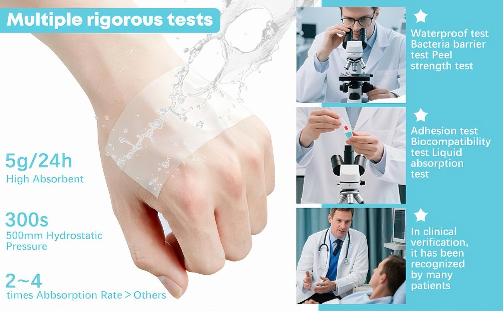 Absorbs exudate + seals wounds → 40% faster recovery vs. dry gauze.